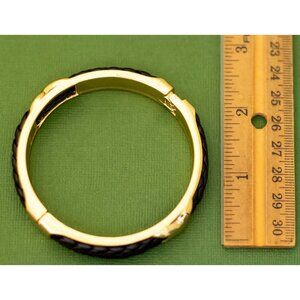 7 inch, Vintage Black Ropes Gold Tone Hinge Bangle, K37
