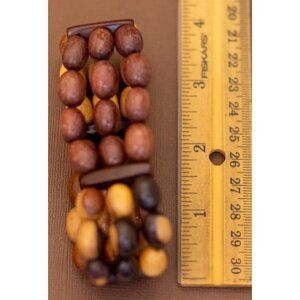 7 inch, Vintage Wooden Oval Beads Unique Beaded Bracelet