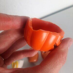 Some wear on nugget eyes. Some broken edges on pumpkin.