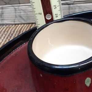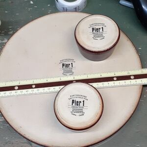 7 pc Shanghai tea Set from Pier 1 and tea pot from Taiwan, with accessories.  Beautiful pottery tray and 2 tea cups, with great pottery tea pot from Taiwan, a cut asian kitty, a tin with orange tea in, and a wood mat.  (Wood mat does have a slight dark stain as shown in picture).  Everything else is in excellent condition.  Enjoy a cup of asian tea with a friend.  Preowned.  In good condition.  Non smoking home.   (Please do not add any other items to this bundle, as it is overweight and we have included the overweight shipping amount in the price to you, so no discounts.)