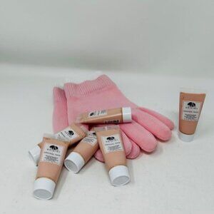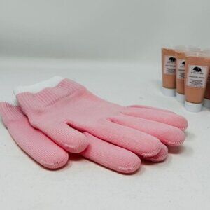 Six (15 mL) Origins Retexturizing Mask with Rose clay and one pair of spa gloves. Treat your hands and face to some pampering!