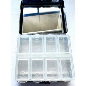 7 plus1 days Metal Pill Box/Pill Organizer with cute design and a compact mirror