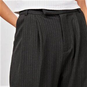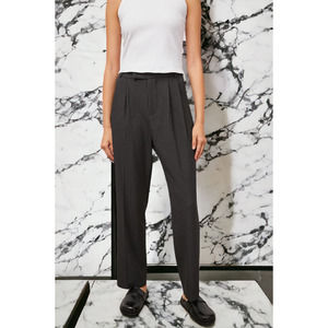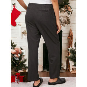 Rails Women's Tay Straight Leg Paints with Pleated Pinstripe Charcoal Grey with concealed hook and bar closure and slit pockets in rear.