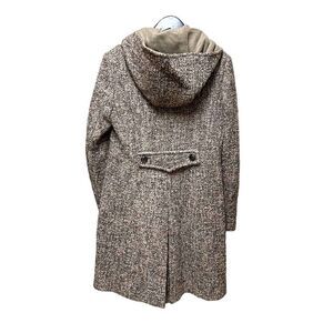 Very classic wool coat in a mixed brown color. It is brand new but with no tag. The hoody makes it so cute!