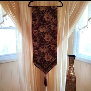 70 " Tapestry Muted Floral Table Runner Made in India. The style is traditional and has a nice weight. This runner has longer end tassels. Pre owned in excellent condition. Pet free smoke free ð¡