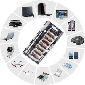 🧿BEST COMBINATION: Kaisi 70 in 1 electronics repair tool kit professional includes 56 screwdriver bits (Phillips, Flathead, Torx, Torx Security, Pentalobe screwdriver and more), handle bar, extension bar, flexible extension shaft, anti-static wrist band, ultra-thin steel spudger, fiber nylon and plastic spudgers, triangle plastic picks, tweezers. Completely re-engineered to provide all the tools that you need, and none that you don't.