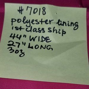 #7018 New Raspberry Polyester Lining Cut of Fabric. Beautiful fabric. Listed for limited tie only.