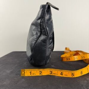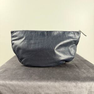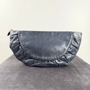 70s 80s Vintage Half Moon Navy Ruched Genuine Leather Clutch Purse | Hong Kong