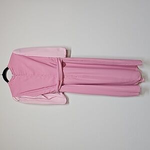 70s 80s Vintage handmade dress. Jester color block pink and rhinestones midi LS