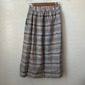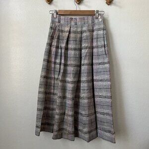 70s Ann Stevens gray purple plaid tweed like a line pleated full skirt midi 26"