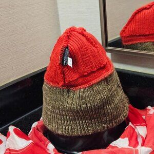 Mostly rib knit w purl stitch red hat rim