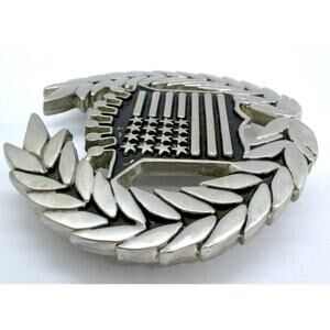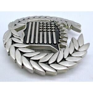 70s Famous Stars and Straps 8387 Crowned US Flag Framed Laurel Belt Buckle EUC