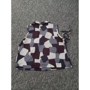 This polyester top is in good condition with perhaps some mild discoloration at the armpits.