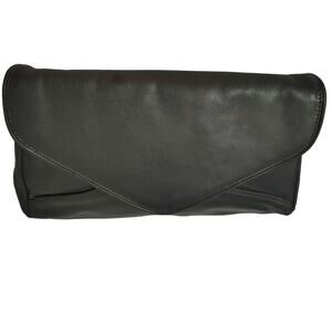 70s Gray Maxi Clutch Faux Leather Fold Over Closure Magnetic Clasp Two Compartments