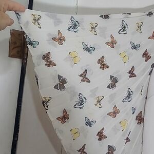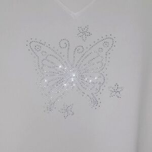 70s Inspired Beaded Butterfly Blouse Bell Sleeves Cream Stetchy Crepe V Nk Boho