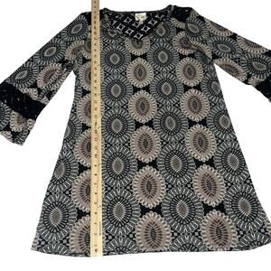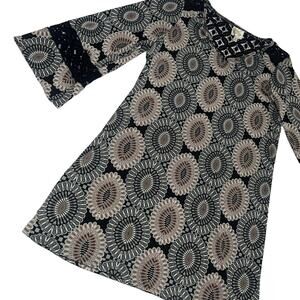 70s Inspired Fig & Flower Anthropologie Bell Sleeve Mini Dress S Small Printed