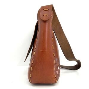 Step back in time with this stunning vintage 70s leather shoulder bag! The unique painted flower design adds a touch of whimsy and retro charm to this classic piece. Perfect for adding a pop of color and vintage flair to any outfit.