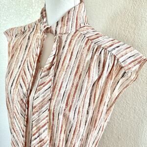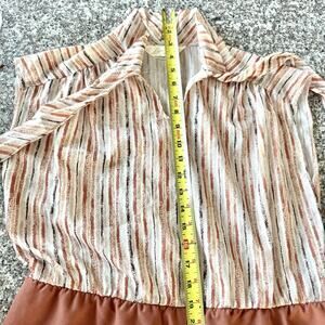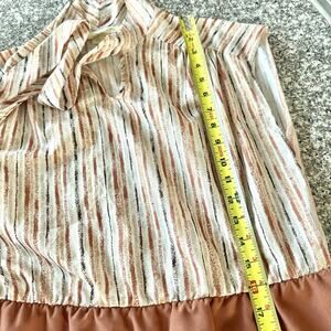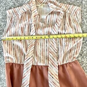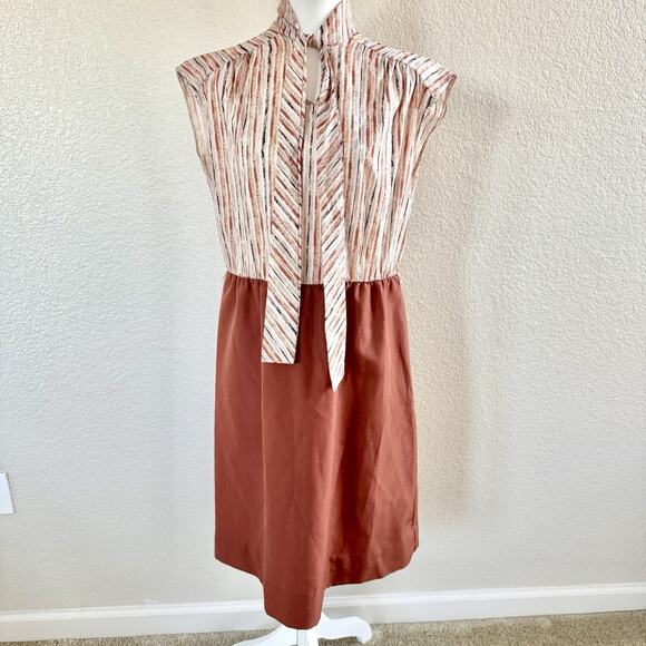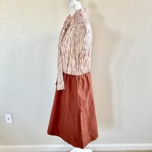 70s Lynn Davis Sz 14 Rust Red Midi Dress Tie Neck Striped Secretary Boho Retro