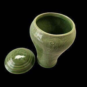 70s Max Factor Covered Ceramic Container Jar for Khara Fantasy Milk Bath Green