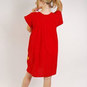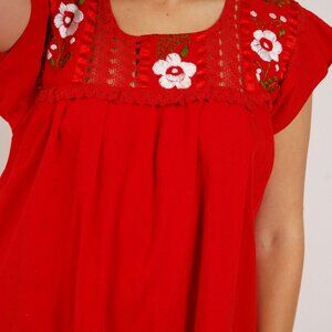 70s Mexican Babydoll Dress (L) red embroidered shift large vintage boho hippy
