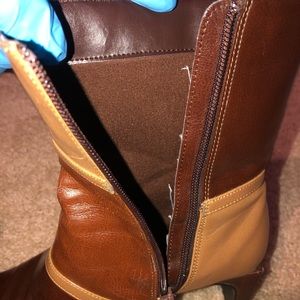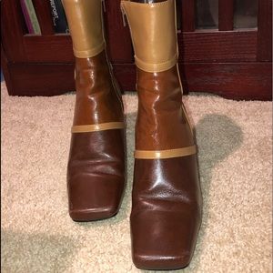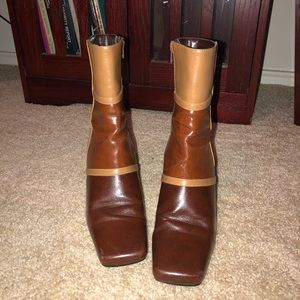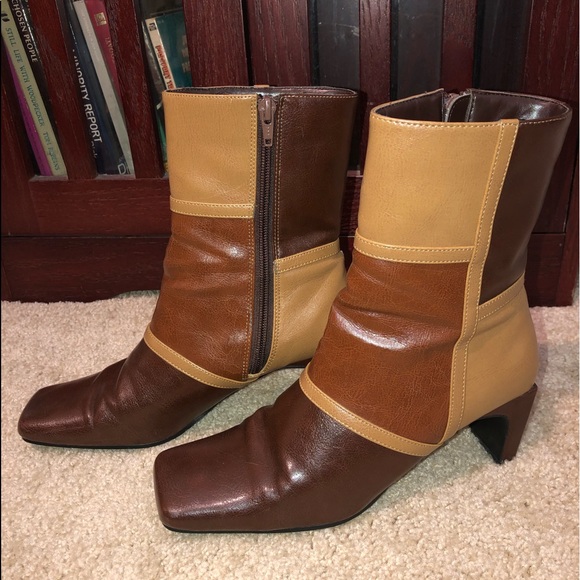 ‘70s Mod Color-Block Square-Toe Leather Boot Heels
