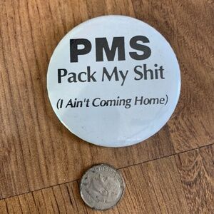 70's Funny Pin: PMS PACK MY SHIT (I AIN'T COMING HOME)