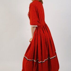 70s Prairie Dress (L) red drop waist full maxi large vintage cottagecore cottage