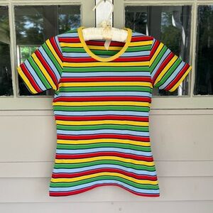ADORABLE form fitting primary color rainbow ringer top from the 70s. No tags, great condition with no noticeable flaws.