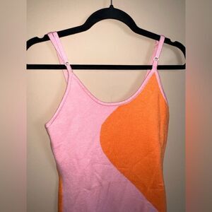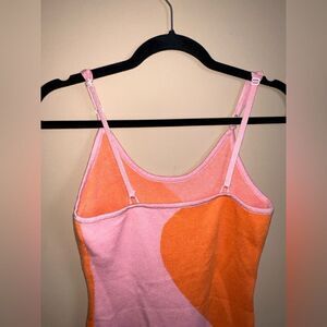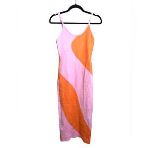 70’s Retro Bodycon Baby Pink & Orange Tank Sweater Maxi Dress Size Small