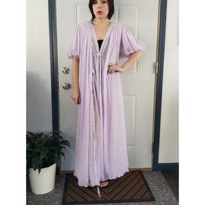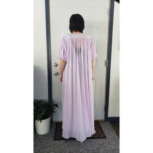 This gorgeous set by Miss Elaine is in excellent condition, though missing its original thin purple belt for the Robe. The rose of the Gown is safety pinned on, but I have left it that way rather than stitch it back down in case you would prefer to remove it.