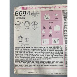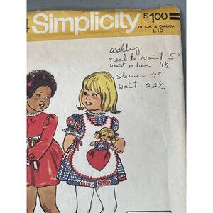 70s Simplicity 6684 Sewing Pattern Size 3 Toddlers Dress Apron Doll Vintage CUT