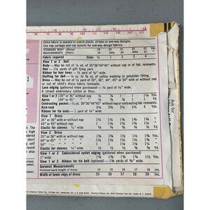 Cut pattern for toddlers featuring a dress, apron, and a doll transfer. Includes size 3 breast 22" details. Previously used; some wear visible on the envelope.