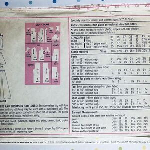70s Simplicity 6984 Pattern Shirt Jacket Wide Leg Pants Shorts 20 1/2 UNCUT.