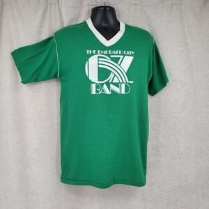 70s Single Stitch Green White Baseball Vneck Tee The Emerald City Oz Band Soccer
