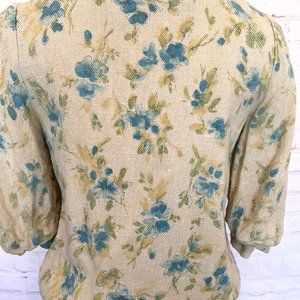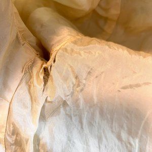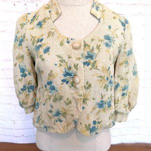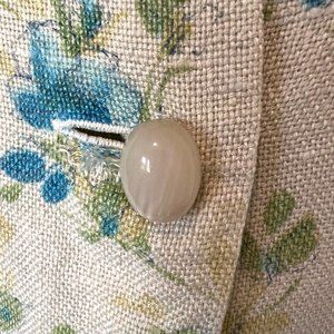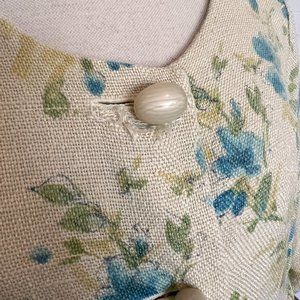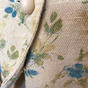No fabric content tag, seems like a cotton blend. There is no stretch to this fabric.