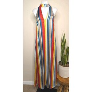 70's Style Striped Satin Maxi Dress Flowy Womens Festival A7
