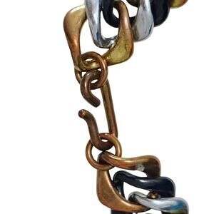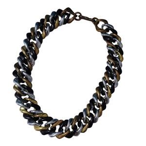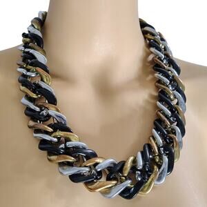1970s Tri-color Black Gold Silver Huge Plastic Interlocking Link Necklace Hook Closure