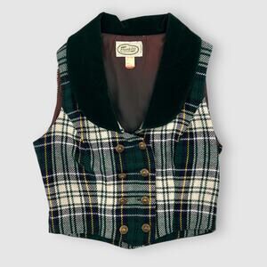 💚 tags: vintage plaid vest, preppy chic, dark academia, 70s fashion, 80s vintage, statement vest, velvet collar, double-breasted vest, layering piece, cottagecore academia, heritage style, holiday