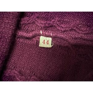 70s Vintage Lace Up Front Cable Knit Sweater Skirt Plum Ankle Length Sz S/M in very good pre-owned vintage condition, no flaws to note. Not lined. It has no maker's label, but was found with some Rodier-labeled items with similar size tags. Marked sz 44 but see measurements.I think it is wool.