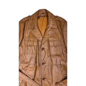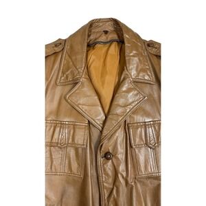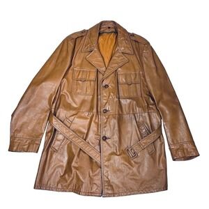 70s VTG Mob Boss Tan Leather Jacket 4 Pocket Belted Jacket Coat Sz 50XT