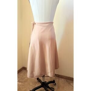 Two looks in one! This reversible wrap skirt features a colorful boho paisley print on one side and Tan solid on the other. Adjustable tie waist, flowy A-line fit, and midi length.