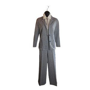 This 3 Pc polyester plaid suit by Montgomery Ward is a must have staple in your wardrobe. This suit is in good vintage condition. The elastic waist pull on pants appear to have never been worn. The skirt's elastic does need replacing. The jacket buttons up the front and has two pockets.