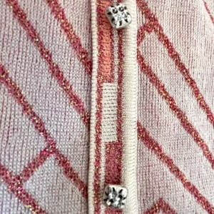 70s Vintage Camela International Pink Metallic Mod Abstract Knit Cardigan Size M