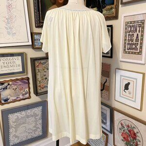 70s Vintage Colony Club Yellow Nightgown With Blue Ribbon & Lace Trim OSFM
