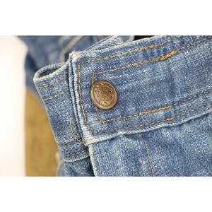 Embrace the spirit of the 70s with these vintage hippie bell-bottom jeans. Perfect for Woodstock festival goers and boho enthusiasts, these high-waisted denim and suede leather jeans bring back the disco era in style. Ideal for size 24, they're a timeless addition to any vintage wardrobe.