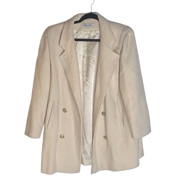 70s Vintage Ivory Wool Forecaster Coat military naval style double breasted Med