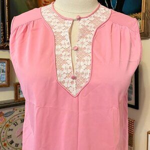 70s Vintage JCPenney Gaymode Pink Nylon Nightgown With Lace Trim & Buttons M