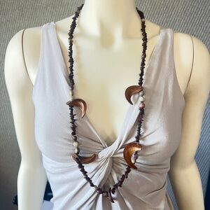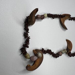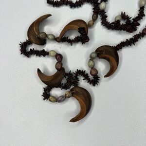 70's Vintage Necklace Hawaiian Koa Apple Seed Brown Puka Shell Tourist Lei Boho