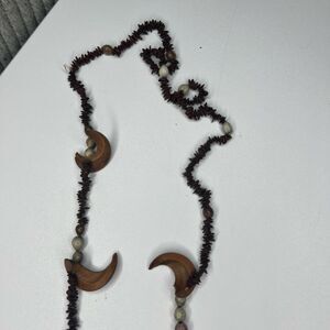 70's Vintage Necklace Hawaiian Koa Apple Seed Brown Puka Shell Tourist Lei Boho Hippie