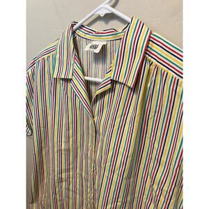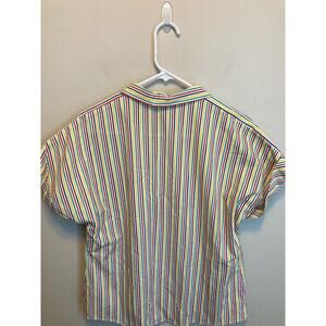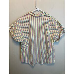 70's Vintage Nikki Rainbow Striped Short Sleeve Button Up Blouse Size 13/14